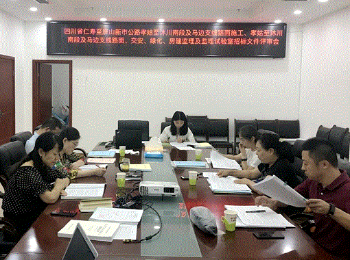 为了进一步推进2020年仁新路完成全线通车工作,保障孝姑至沐川南及马边支线段路面工程的顺利建设,2019年7月29日上午仁沐公司在交投大厦A0102会议室组织召开了孝姑至沐川南段及马边支线路面施工、路面、交安、绿化、房建施工监理及监理试验室招标文件评审会,参加会议的有交投集团、仁沐公司以及评审专家。