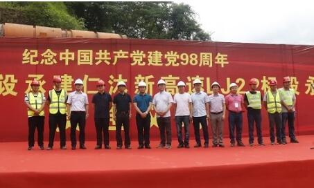 7月8日,仁沐新高速公路马边支线LJ22标段永宁隧道右线顺利贯通,马边彝族自治县委常委、工会主席卫东同志,仁沐公司党总支副书记、总经理姜杰明同志,仁沐公司党总支委员、副总经理赵明雄同志出席本次贯通仪式。