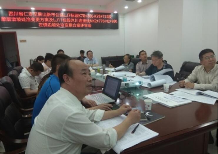 为了确保仁新路建设目标的顺利完成,推进仁新路的顺利建设,2019年4月23日下午仁沐公司在成都组织召开了LJ7标段K78+380~K78+715段顺层边坡处治变更方案及LJ11标段沐川连接线NK2+770~NK2+980段左侧边坡处治变更方案评审会,参加会议的有交投集团、川高公司、仁沐公司、厅公路设计院、中交一院以及特邀专家。
