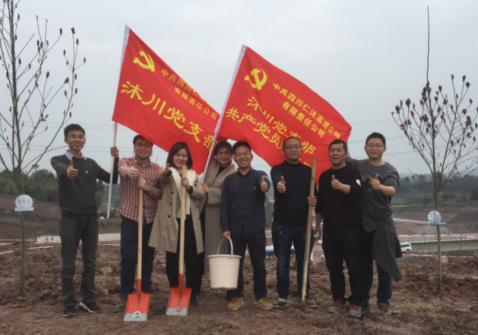 春日融融,新绿初绽,今天正值3月12日国际植树节,下午1点30分由四川仁沐高速公路有限责任公司组织的植树活动在四川省仁寿至屏山新市公路LJ7标段玉屏互通顺利举行。公司董事长兼总经理刘勇、纪检专员陈延昌、副总经理赵明雄和财务总监袁泉四位班子成员带领公司各工会成员、各党支部人员共同种下72颗玉兰树苗。