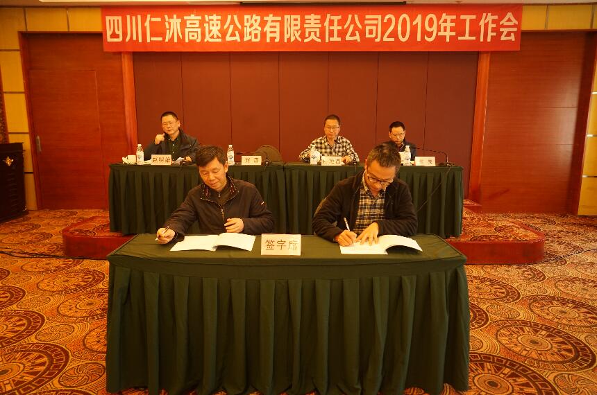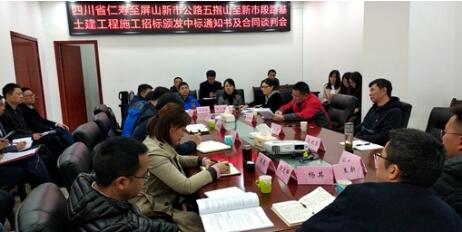 2019年3月22日仁沐公司在成都组织召开了颁发仁沐新高速公路五指山至新市段(以下简称“五新段”)路基土建工程施工中标通知书及合同谈判会,仁沐公司董事长兼总经理刘勇、副总经理赵明雄、纪检专员陈延昌、各职能部门负责人以及五新段路基土建工程施工LJ16、LJ17标段中标人法定代表人及各相关人员参加了本次会议。